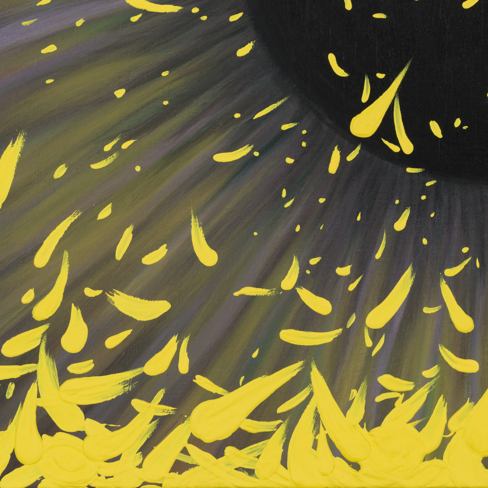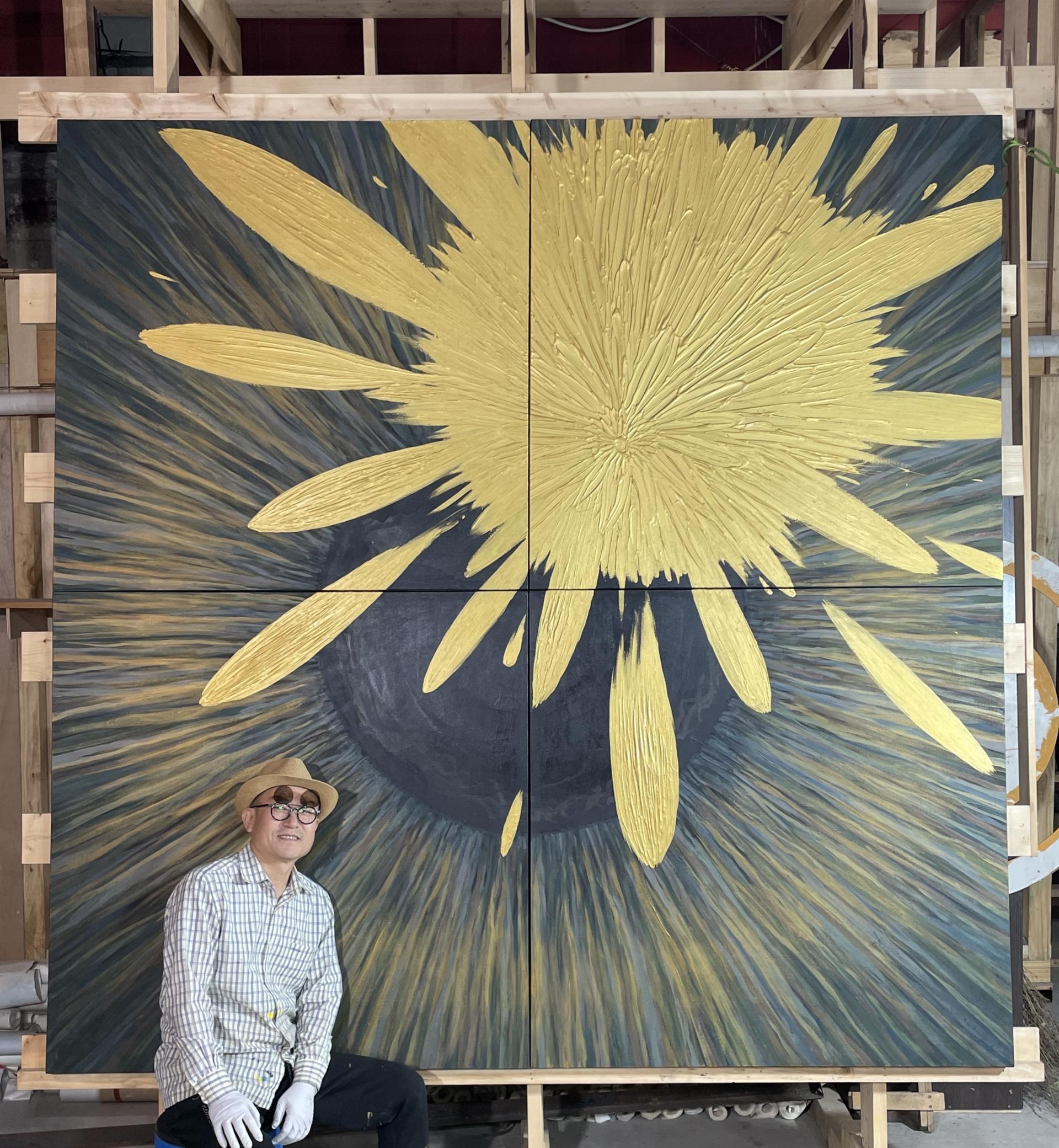 화가는 작은 빛 방울 하나에 열 번 이상 덧칠을 하며 그 속에 담긴 의식의 진동, 감정의 물결, 존재의 의미를 녹여냅니다. 우리는 거대한 태양으로부터 분리된 영혼들이며, 그 빛의 조각이 다시 작은 입자와 영혼이 되어 이 세상 곳곳에 꽃처럼 피어나고 있습니다. 이 작품은 모든 존재가 가진 의식과 정보, 그리고 감정의 환희를 빛의 결, 바람의 흐름으로 시각화한 영혼의 여정에 바치는 찬가입니다.