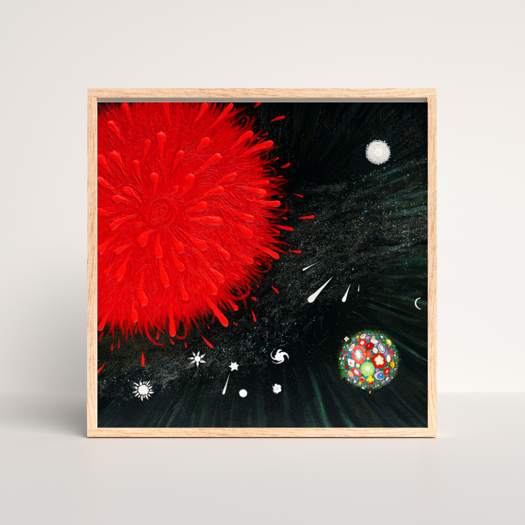 이 작품은 단순한 우주의 장면이 아니라, 생명이 탄생하고, 존재가 자신만의 빛을 찾기까지의 여정을 담고 있습니다. 꽃행성은 불꽃의 희생으로 피어났고, 그 위에 자리를 틀고 살아가는 우리는 이제 우리만의 인생을 살아가는 존재들입니다.