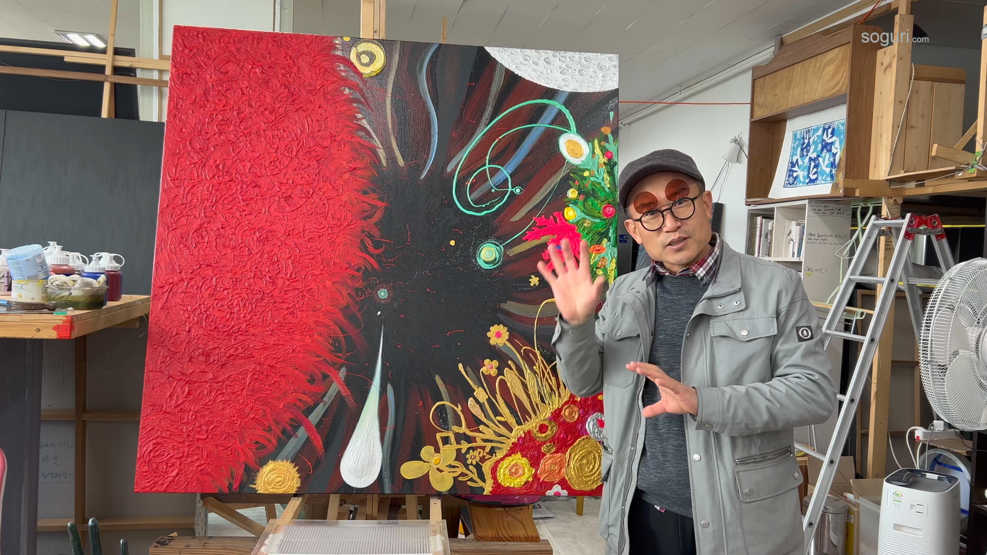 화가 고리들은 1990년 서울대 미대에 입학했고 1996년 18회 중앙미술대전에서 대상을 수상했습니다. 그는 추사 김정희의 “가슴에 만 권의 책이 있어야 글과 그림이 흘러 나온다”와 밀레의 “위대한 화가가 되기 위해서는 위대한 책을 읽어야 한다”는 명언을 따랐습니다. 성공률이 낮은 예술 분야에서 고수가 되기 위해 다독을 희망의 돌파구로 생각하였고, 특히 과학 분야 독서를 통해서 눈동자에 우주 컨셉의 그림을 얻게 되었습니다. '모든 생명체는 별먼지(스타더스트)이지만 꽃으로 피어나거나 반짝이는 생명력을 갖는다'는 의미로 그림을 그립니다. ‘빅뱅부터 인공지능(AI)까지’란 화두로 우주-지구와 인류의 역사를 ‘어린왕자’의 동화 같은 관점으로 관망하며 작품에 임합니다.
